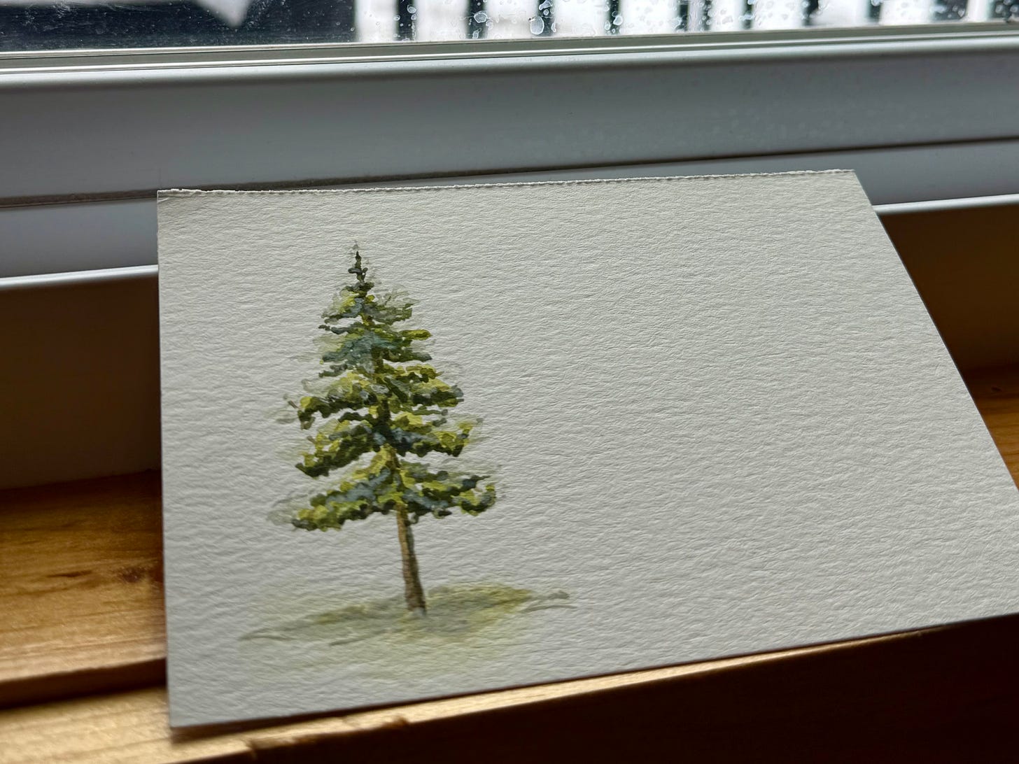 The snowy trees outside looked magical, but I don’t do fir trees very well, so I wasn’t trying to capture them. I just let the paint do what it does, and finally, it happened.